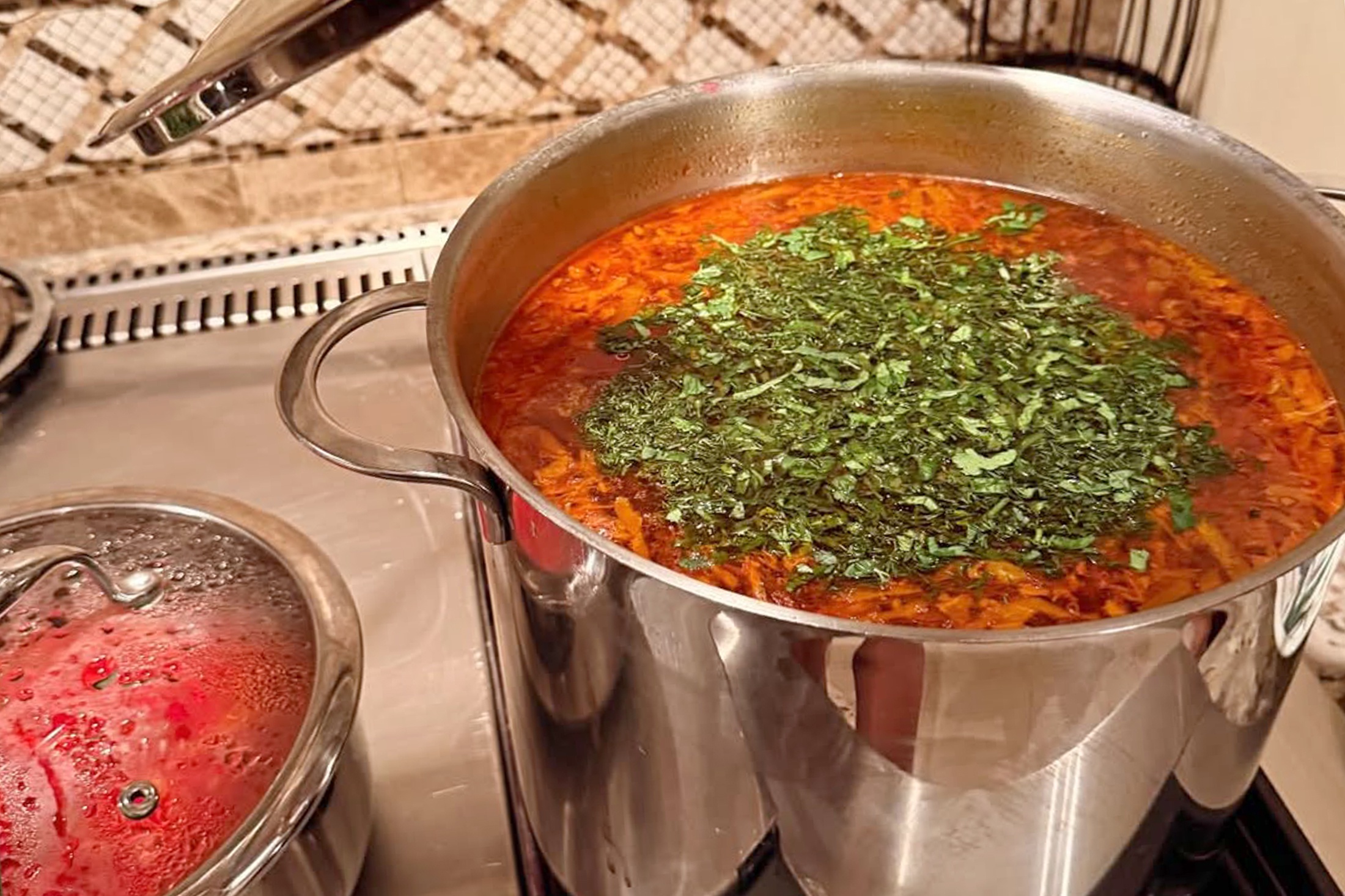 "Похоже, приготовление борща перед игрой для всей команды станет обязательным", - подписала она фотографию огромной кастрюли с супом.