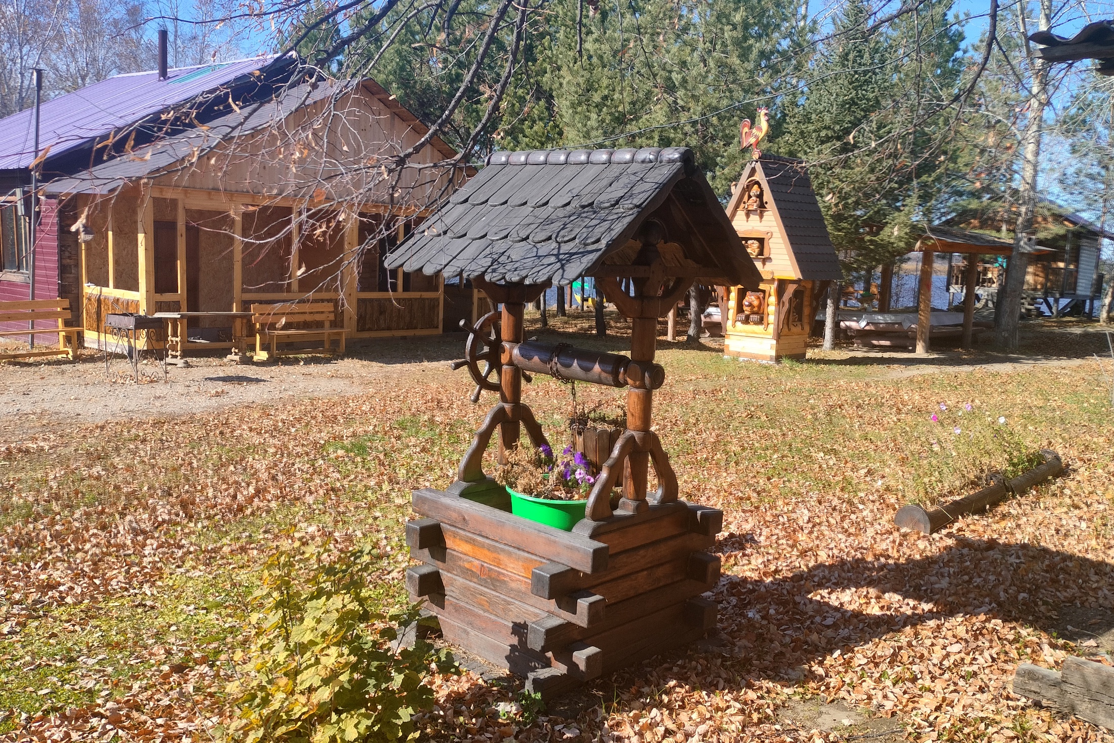 За резными воротами строится хутор, который сами зодчие назвали "В гостях у сказки". Здесь принимают туристов. Летние домики, мангалы, беседки, пни из леса, ставшие мотивами сказок. Строят баню и зимний дом.