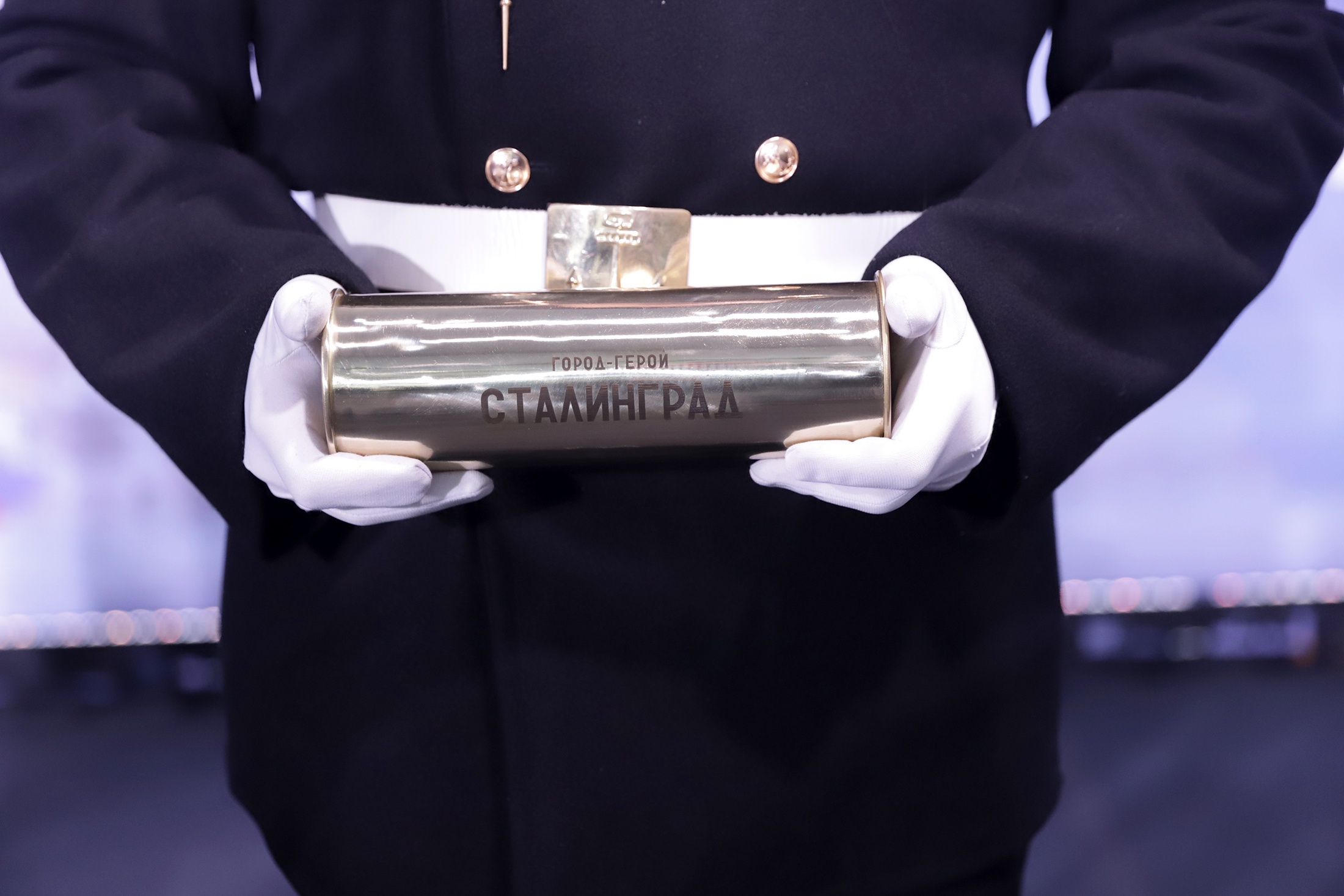Среди участников был фронтовик, сражавшийся в Сталинградской битве, Павел Винокуров - в ноябре ему исполнится 103 года. Он передал гендиректору "Росатома" Алексею Лихачеву капсулу с землей с Мамаева кургана - ее разместят на ледоколе "Сталинград".