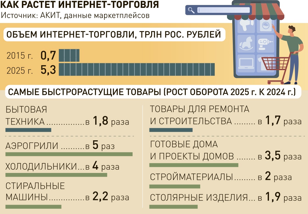 За десять лет, говорят в АКИТ, аудитория e-cоmmerce выросла с 35 до 80 млн покупателей. Если в 2015 году больше 30% от всей суммы покупок в интернете приходилось на зарубежные интернет-площадки, то теперь лишь 3%.