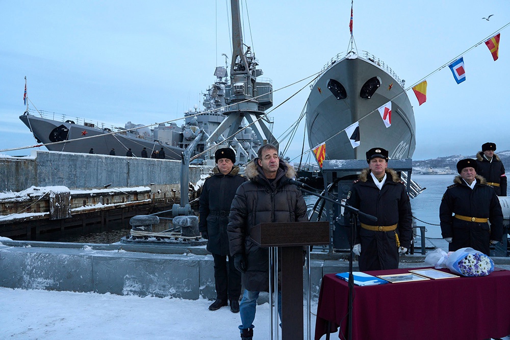 На торжественной церемонии зачитали соответствующий приказ Главкома ВМФ РФ, сообщает пресс-служба Северного флота. Начальник штаба и дети старшего сержанта Манкевича открыли надпись на корпусе катера. Супруге героя - Евгении Николаевне - вручили памятную фотографию катера, флаг ВМФ России и приказ Главкома.