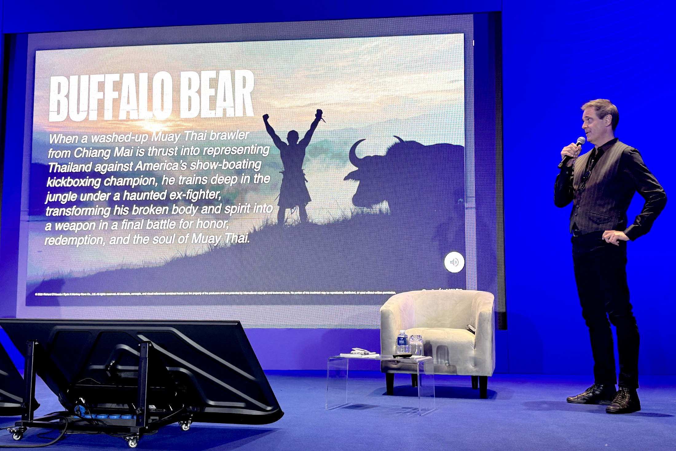 Известный специалист по спецэффектам Арман Яхин в партнерстве с кинорежиссером Ричардом Алессио рассказали на питчинге о своей задумке. Фильм "Буйвол-медведь" - спортивная драма, которая расскажет о закулисной и публичной жизни тех, кто занимается тайским боксом. И Арман, и Ричард - продюсеры фильма, который будет сразу сниматься на английском и тайском языках.