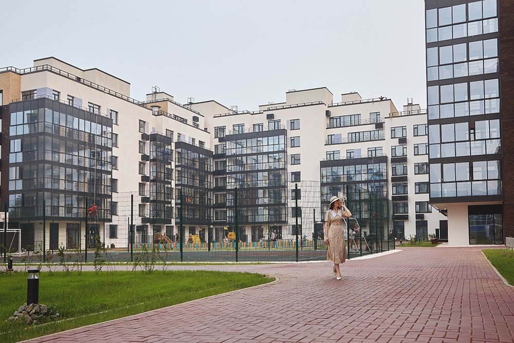 Дома построены в едином стиле, первые этажи отданы под аптеки, магазины, кафе.