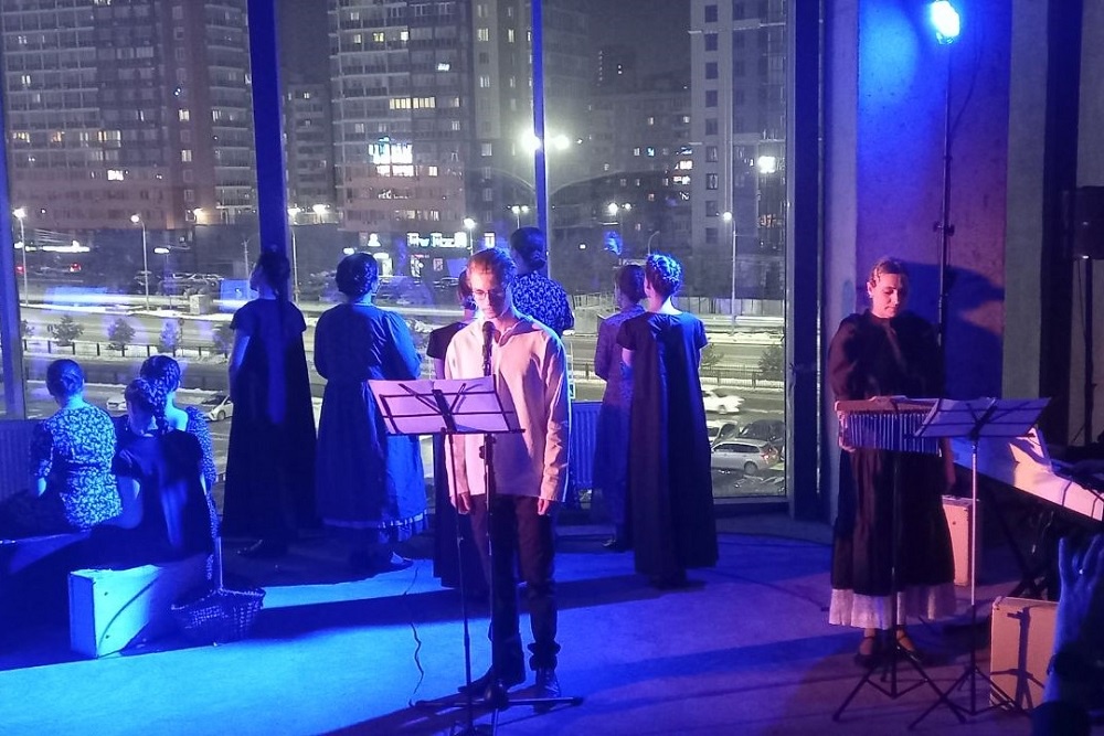 В спектакле задействованы два артиста и 17 человек хора "Красные бусы". Первые зрители не сдерживали слез - история двух священников, убитых за то, что не отказались от своей веры, тронула всех.