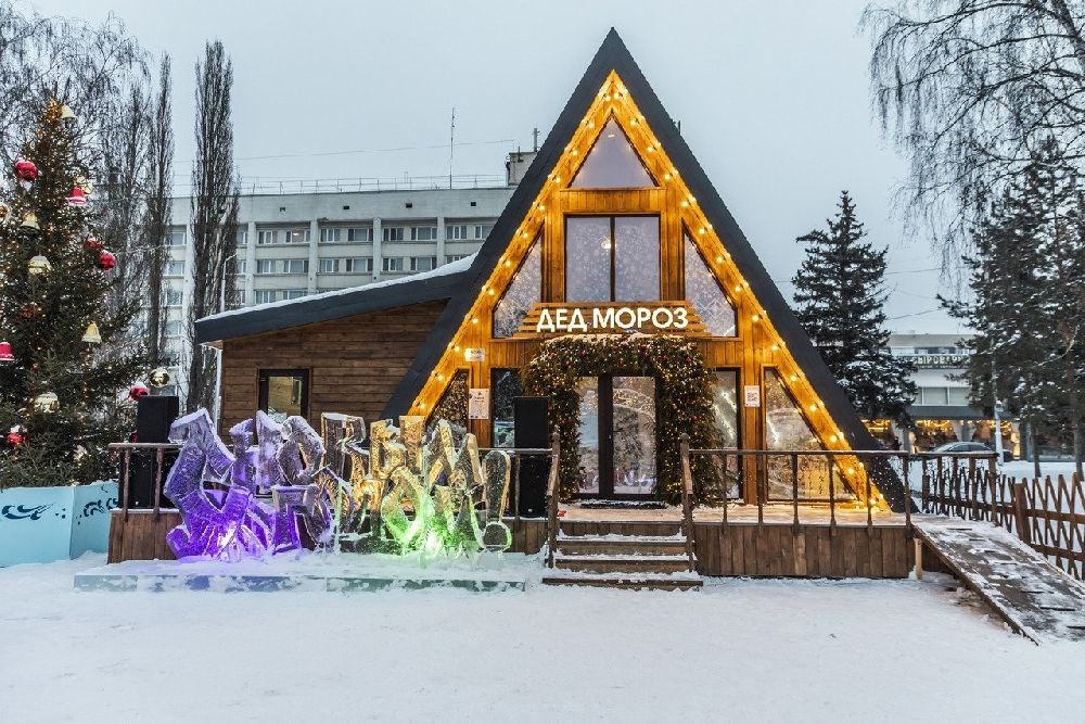 На площади Ленина установят две детские горки, композицию "2026", скульптуры Деда Мороза и Снегурочки из стеклопластика и 30-метровую пиксельную ель. Здесь также появится Башкирский пряничный городок, ледяные скульптуры, деревянный новогодний поезд и др. Каток на площадке обнесут ледяным ограждением. Всю площадь украсят гирляндами.