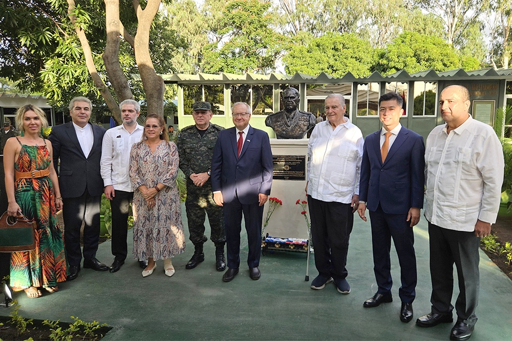 В Россотрудничестве отметили, что бюст Георгия Константиновича Жукова был передан никарагуанскому военно-учебному центру благодаря помощи члена Российского географического общества Юрия Волкова.