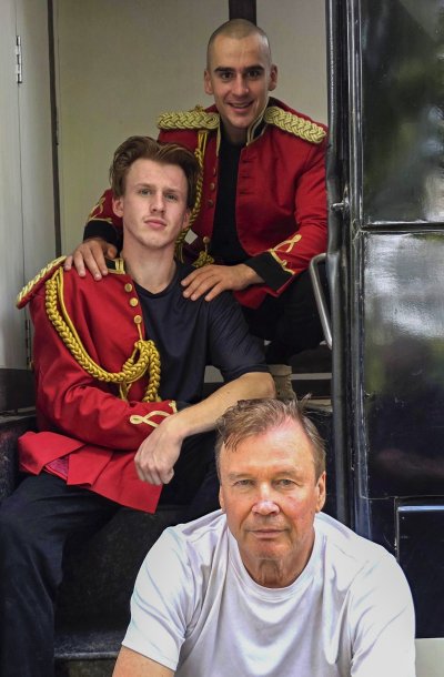 Метрах в трехстах ниже на дороге стояли трейлеры. В одном из них нас поджидал тот самый сюрприз, о котором говорил Сарфараз. Там спасались от зноя три наших соотечественника - постановщик трюков Сергей Головкин и два его каскадера Денис и Максим. Они тоже снимаются в "Революционерах", играют роли английских солдат. Головкин - один из самых титулованных людей в его профессии, он был каскадером и постановщиком трюков в трех сотнях разных фильмов. И в Индии, как выяснилось, уже снимался и даже удостоен за трюки высокой киношной награды.