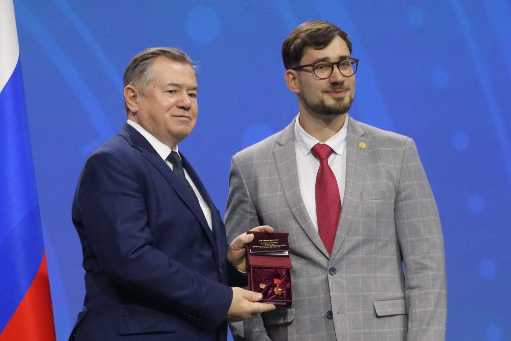 Тепло обращаясь к лауреатам со сцены, он особо подчеркнул важность того, что все три работы, удостоенные награды, являются совместным трудом, который выполняется молодыми учеными двух государств в тесном сотрудничестве по реализации приоритетов, определенных в Стратегии научно-технологического развития Союзного государства.