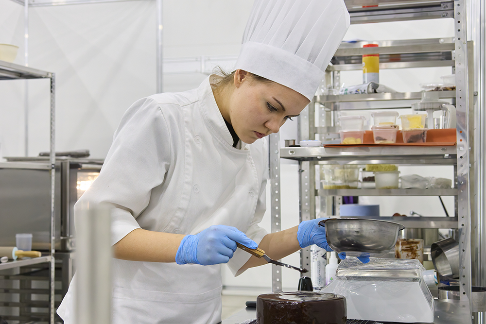 Что готовили? Торт Захер с отдельным модулем - шоколадным декором в виде цветка, тарт-татен - яблочный пирог, тарталетки с начинкой, мармелад, конфеты трюфели… Это в индивидуальном зачете. А впереди - командный, где, разделившись на группы, ребята будут делать торт.