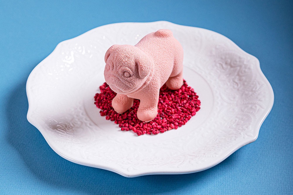 Фирменный десерт в виде символа заведения - мопса - уже несколько лет занимает лидирующие позиции в рейтинге лучших десертов столицы. Его первую версию (с начинкой из бананового мусса, клубничного лимонада и миндального бисквита) некоторые считали "банальной" с точки зрения вкуса. В версии десерта "Buro TSUM-2025" компанию миндальному бисквиту под шоколадным велюром составляют мусс юдзу и лимонад клубники и базилика. Никаких поводов для критики, сплошное наслаждение. Любовь к собакам не зависит от времени года.