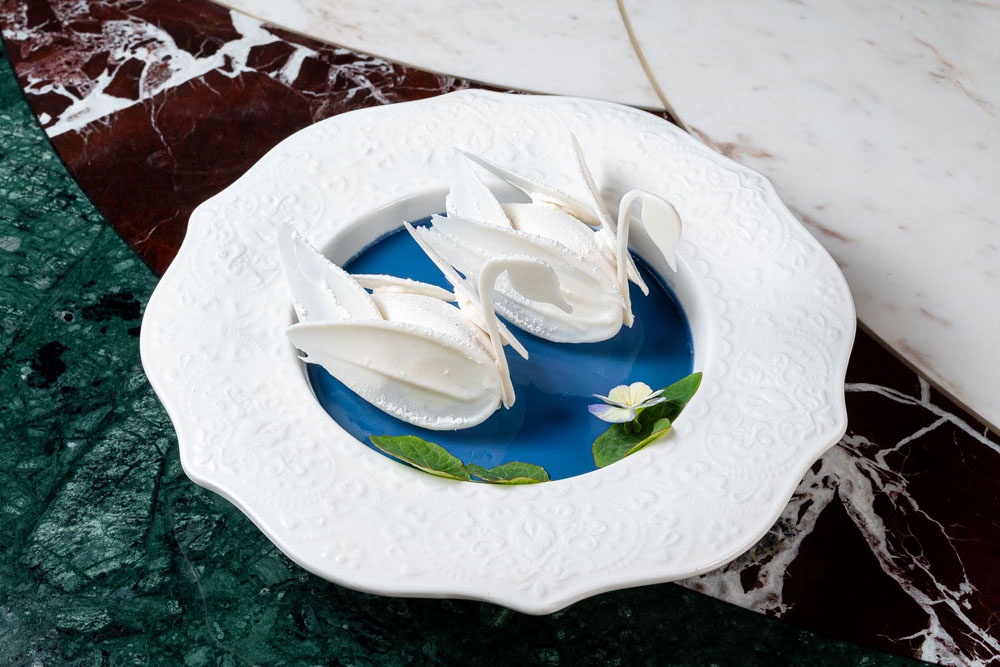 Лебеди - символ Патриарших прудов. Вдохновившись соседством, шеф-кондитер ресторана Erwin.Pavillion.Patriki Марина Раева создала десерт "Лебединое озеро". Его готовят на основе ванильной панакоты с кусочками свежей клубники и желе из голубой матчи. Лебеди сконструированы из белого шоколада, ванильного ганаша, а внутри - клубничное варенье. Появившись в новогодней версии-2024, десерт настолько полюбился гостям, что его оставили в основном меню. Ожидаем лебедей снова в новогодней подаче.
