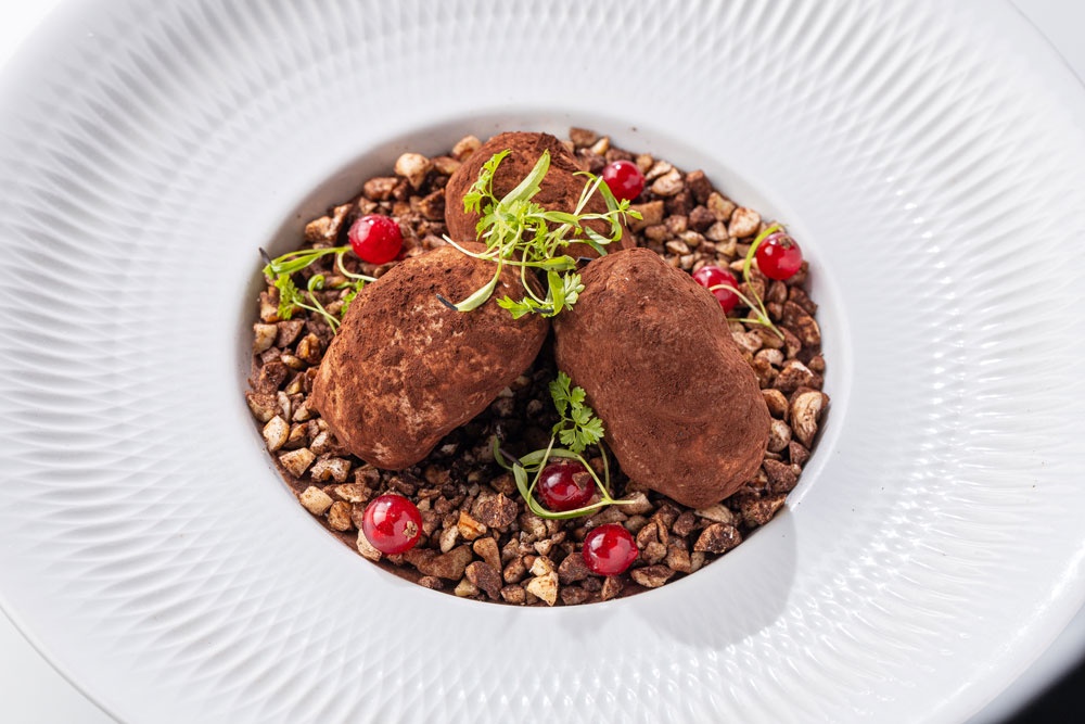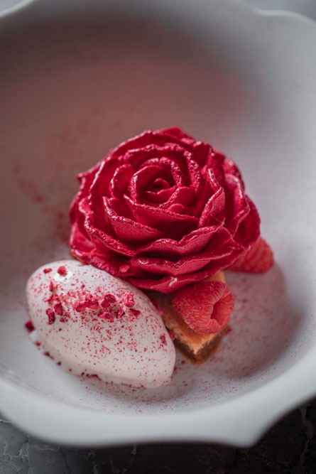 Заказываете десерт с прозаичным названием "Крем-пломбир с юдзу", а официант вам выносит букет алых роз с каплями росы на лепестках. Зимой! Ловким движением руки один из цветов превращается в десерт, ставший звездой соцсетей. Плотный сливочный крем, кислинка японского цитруса, а вокруг много малины. Девушки такое оценят, ведь получать цветы приятно в любое время года.
