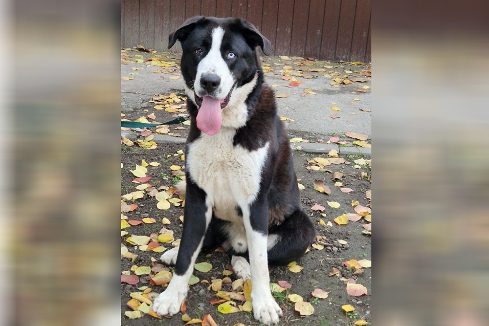 А какой красавец алабай Мартин! Сам черный, грудка белая. Его спасли от отстрела.