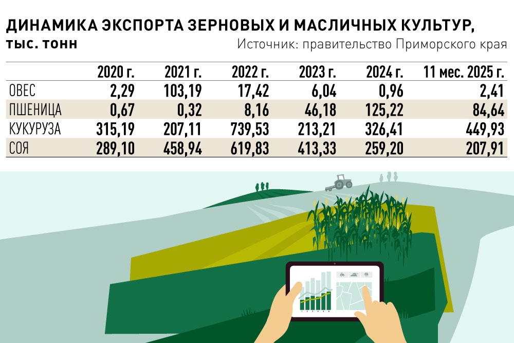 Лесоматериалы на экспорт идут приморские, а также из других регионов ДФО и Сибири - их за 11 месяцев 2025 года вывезено свыше 1,3 миллиона кубометров. Около 600 тысяч тонн из более чем 1,5 миллиона тонн зерна - выращенные в Приморье соя, кукуруза и ячмень. Основные покупатели этих товаров - Китай, Республика Корея и Япония.