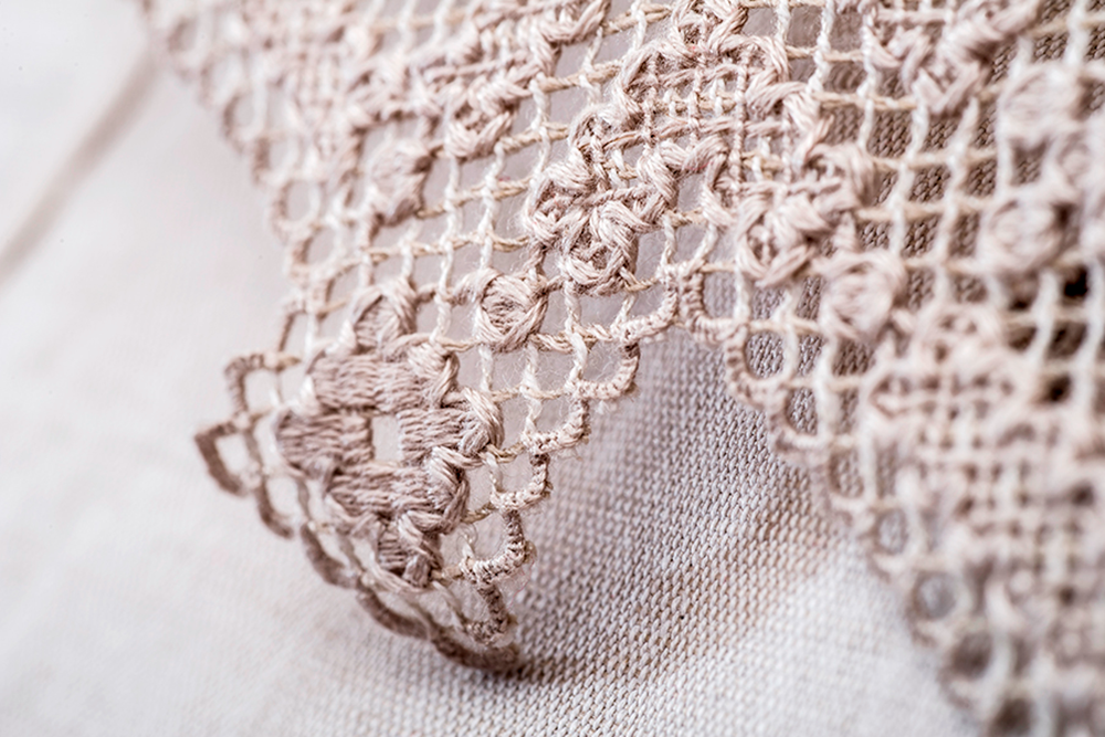 "Из ткани выдергиваются нитки по определенному счету. Часть нитей вырезается, часть оставляется, обрабатывается, закрепляется, и только потом вышивается на этой сеточке орнамент", - объясняет автор.