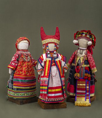 Сейчас Ирина не преподает. Слишком много времени уходит на работу в музее и создание собственных авторских изделий. Особое место среди них занимают куклы. Для этих девочек ростом около 40 сантиметров она детально воссоздает рязанские народные костюмы. С традиционной многослойностью, разнообразием тканей и фактур и, конечно, вышивкой. Куколки всегда собирают массу комплиментов на выставках. Порой потом уходят жить в новый дом. Купить их, к слову, только так и можно. На заказ автор не работает.