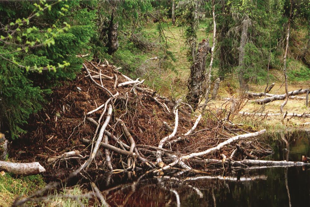 Часто после постройки плотин на речке вода поднимается настолько, что образуются обширные и глубокие пруды. Основная пища бобров - кора и ветки березы, ивняки, осина, тополь и водно-прибрежная трава. Иву и березу животные заготавливают на зиму: разделывают ствол сваленного дерева на части и затапливают ветки у входа в нору.