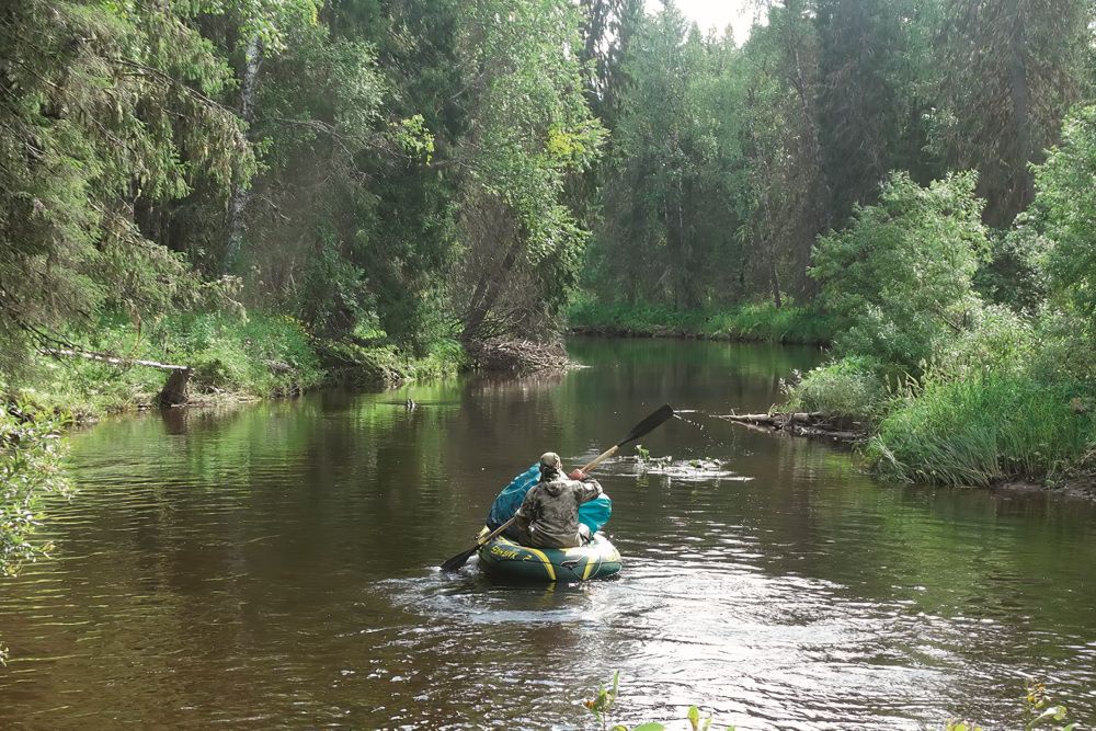 …Я - в лодке. В руках - двухлопастное весло. На шее - фото-видеокамера, GPS-ка и диктофон, в кармане - записная книжка. Студенты с посошками уходят по берегу… Вода на полметра упала. Это хорошо! После пары поворотов - первый завал. Куча спрессованных давлением воды стволов, веток и разного речного мусора длиною метров в пятьдесят. Разгружаемся. Проминаем дорогу в обход завала по высокой траве, обрубая торчащие ветки упавших елок. Перетаскиваем рюкзаки, суму, лодку. Грузимся. Плывем. Идем. Работаем. На первом километре фиксируем четыре бобровых поселения. Обносим два завала, штук семь упавших в воду березовых стволов и раскоряченных сухими ветками елей. Первый прокол борта. Ремонт. Дальше движемся размеренно, не теряя друг друга из вида…