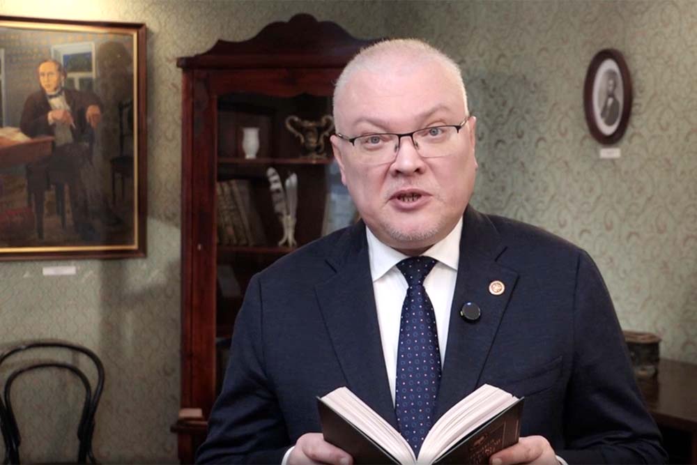 Нашу книгу "открывает" губернатор Кировской области Александр Соколов. Чтобы прочитать эти строки, он специально отправился в Дом-музей Михаила Евграфовича Салтыкова-Щедрина в Вятке.