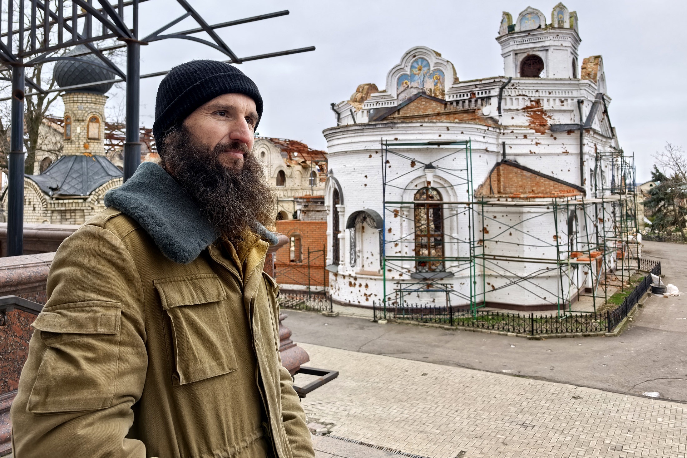Сейчас в монастыре гораздо тише и спокойнее, хотя еще слышны отдаленные взрывы и гул беспилотников. Но гораздо громче тарахтят генераторы и визжат бензопилы. Идут восстановительные работы. Двор уже убран, у стен появились строительные леса. Работают волонтеры, монахи, трудники.