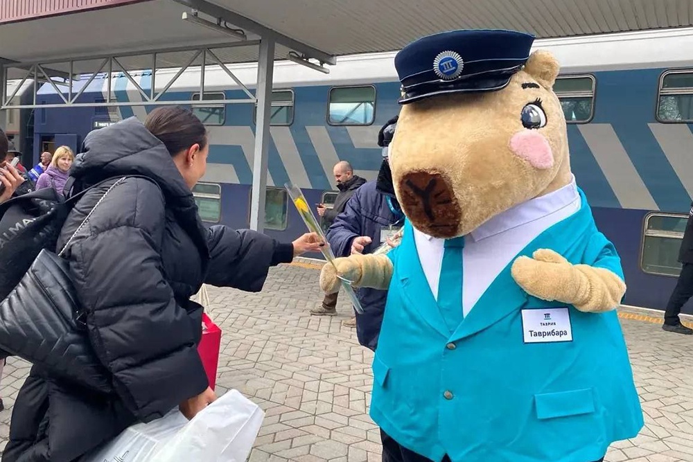 В Крыму прошла акция "Цветочная встреча", в рамках которой женщинам, приехавшим на поезде в Симферополь, дарили тюльпаны. Как сообщает РИА Новости со ссылкой на пресс-службу министерства курортов и туризма республики, акция проходит в рамках Года гостеприимства. Букеты также раздавал Таврибара - талисман компании-перевозчика "Гранд Сервис Экспресс".