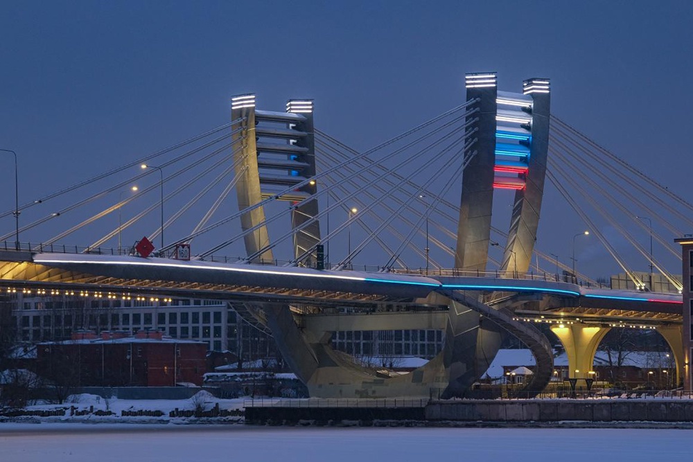 В Петербурге в честь праздника три моста подсветили цветами российского триколора. Освещение включили в 18:50 на Дворцовом и Троицком мостах. Также особый режим подсветки задействовали на мосту Бетанкура. Работать он будет с 7:30 9 марта.