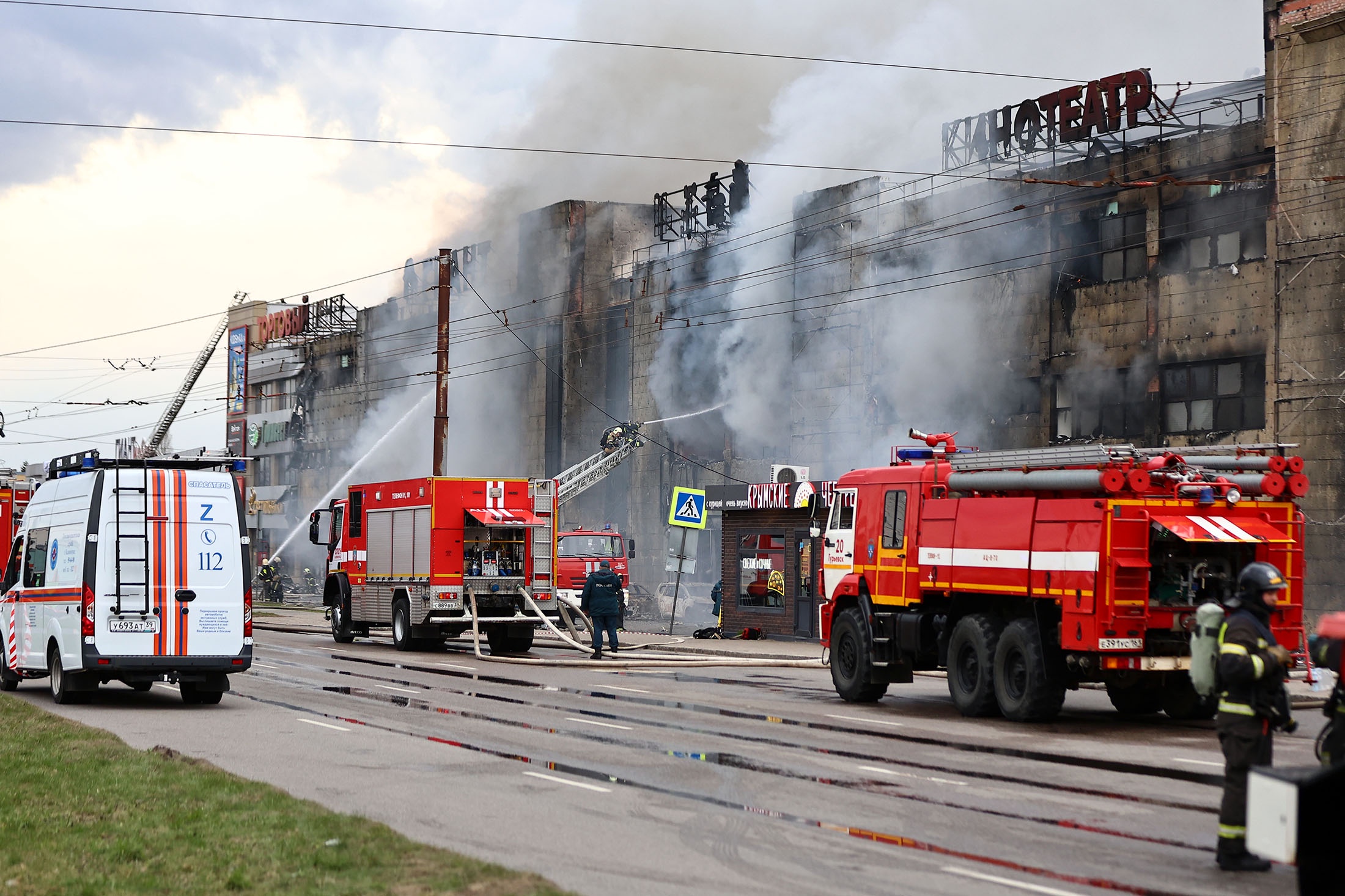 Ранее в министерстве сообщали, что огонь распространился по обшивке фасада здания и перекинулся на припаркованные рядом автомобили. Тушение осложняет сильный ветер. К ликвидации привлечено 75 человек и 15 единиц техники.