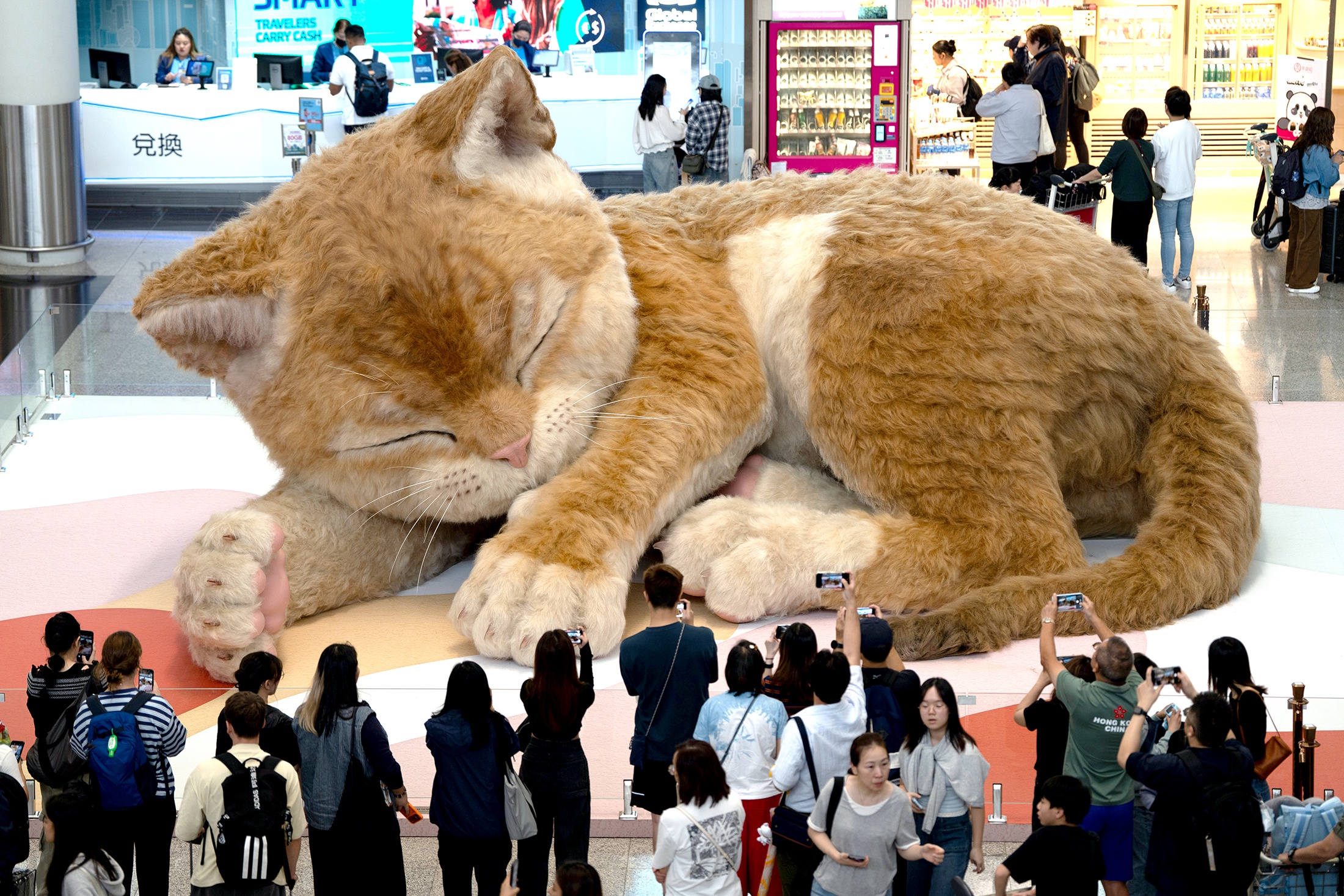 "Поскольку животные - это универсальный язык, аэропорт впервые использует гигантские инсталляции в виде животных, чтобы преподнести путешественникам праздничные сюрпризы", - рассказали представители аэропорта, комментируя свой необычный выбор символа Пасхи в этом году. По их словам, кот помогает пассажирам снять стресс после долгих перелетов.