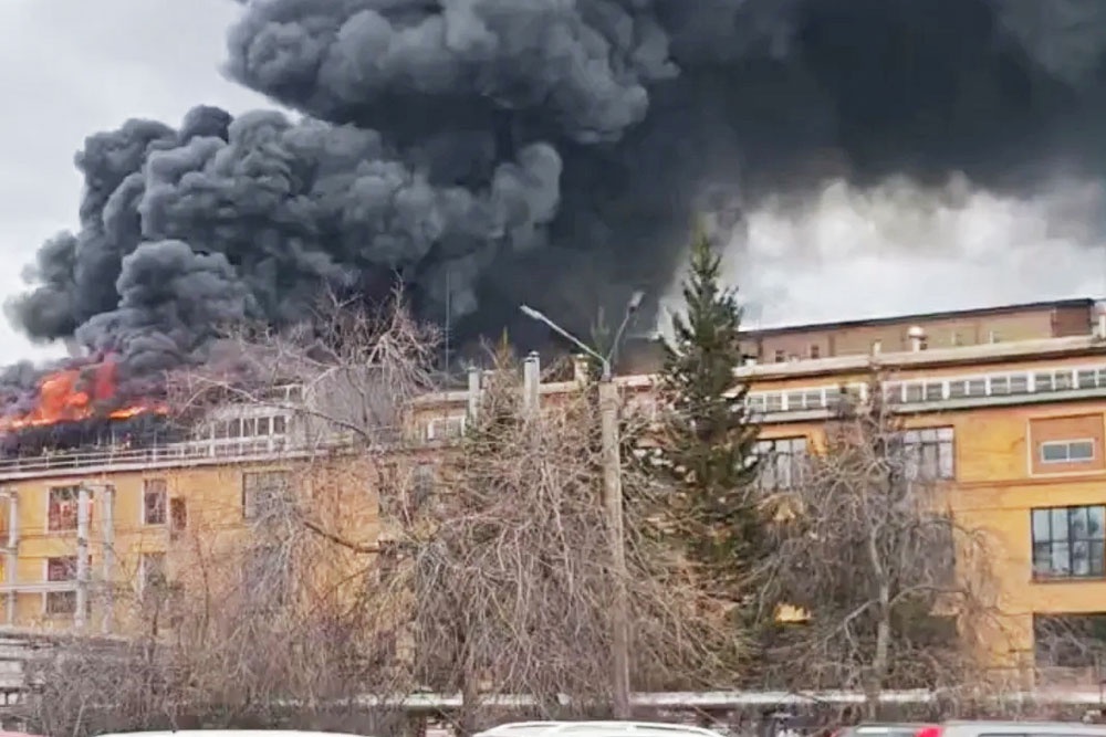 Сигнал о возгорании на улице Доржи Банзарова поступил 14 апреля. Полыхают производственные помещения комбината, сообщили в региональном управлении МЧС.