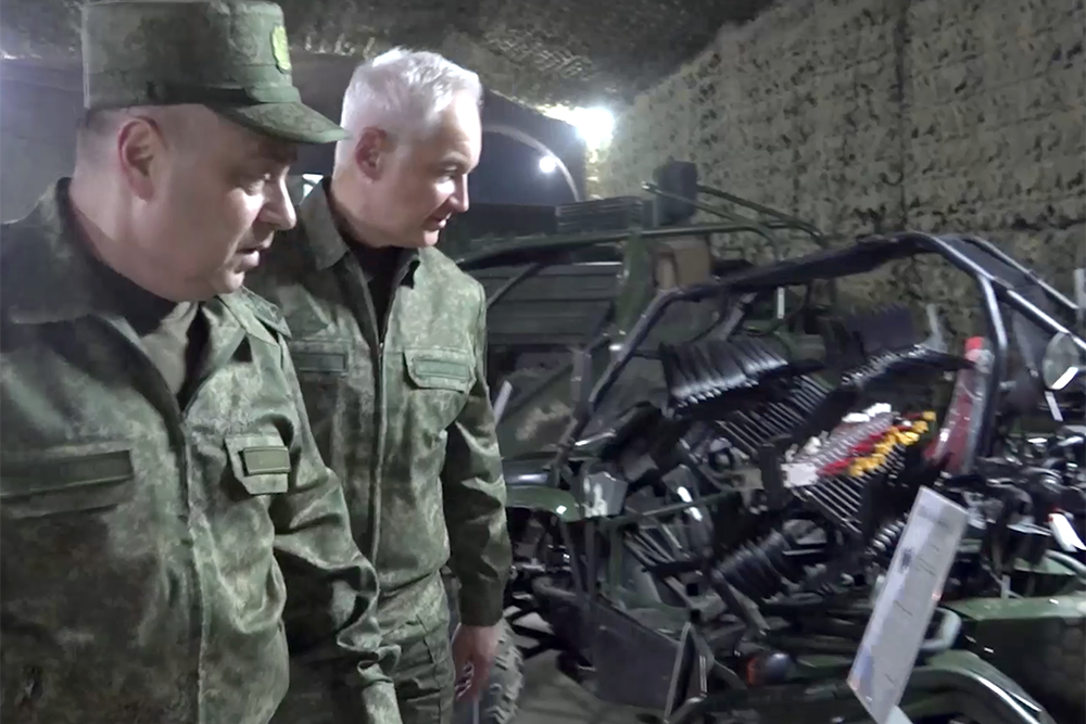 Министру обороны Белоусову в зоне СВО показали беспилотники и наземных роботов