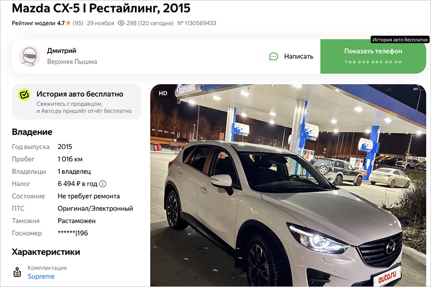 В России на продажу выставили Mazda CX-5 2015 года после 10 лет хранения