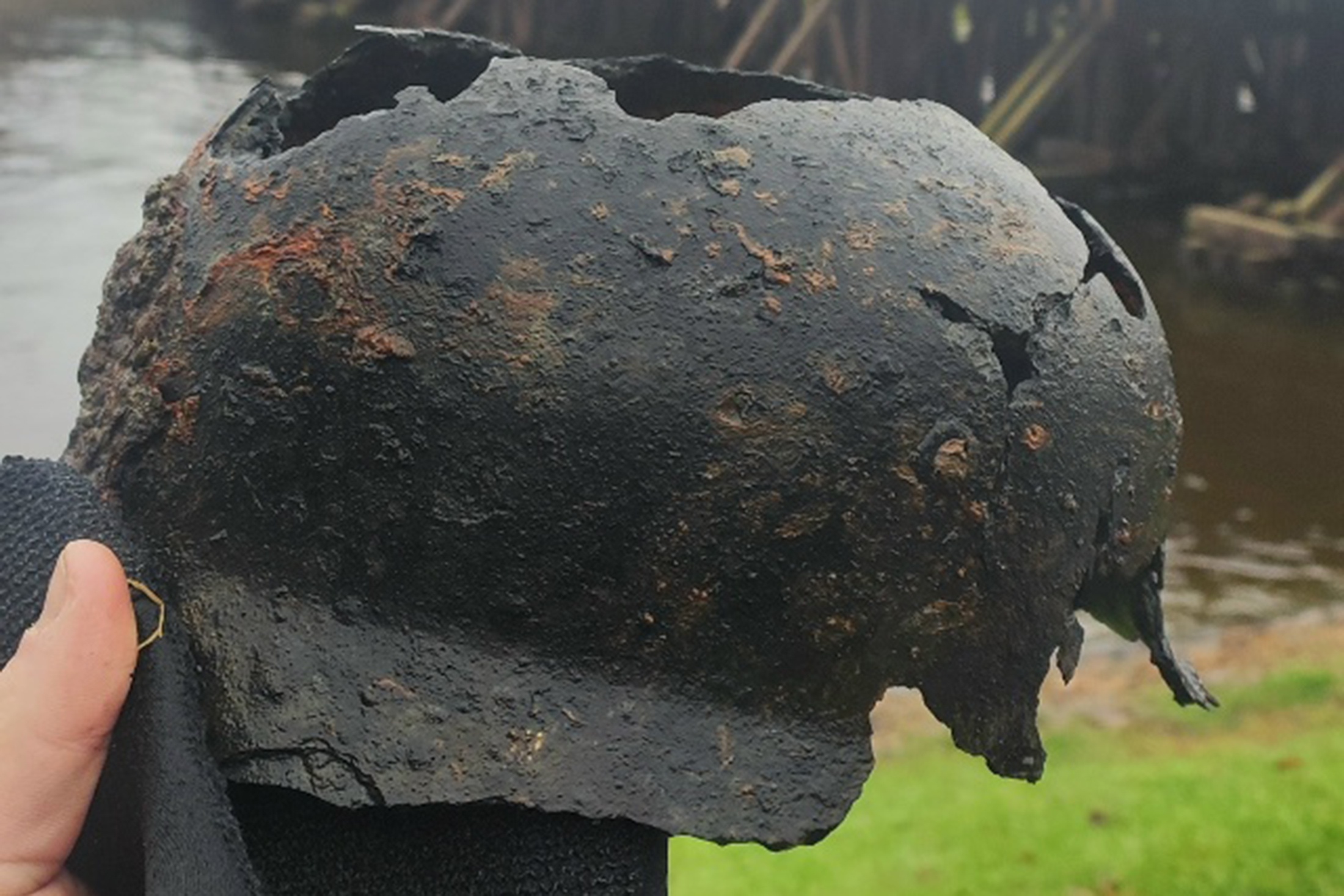 Водолаз достал из Невы каску вермахта и снял на фото, после чего она развалилась