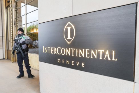 Обстановка у отеля InterContinental перед вторым днем трехсторонних переговоров по Украине в Женеве