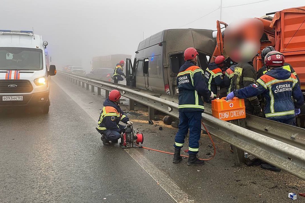 Шесть машин столкнулись из-за тумана на трассе в Саратовской области