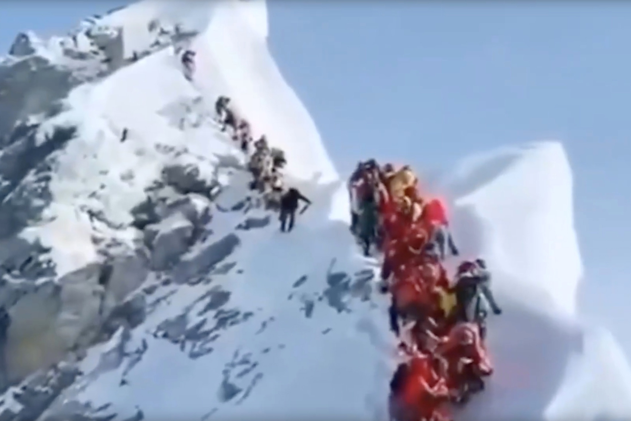 Появились кадры с Эвереста, где из-за метели застряли около тысячи альпинистов