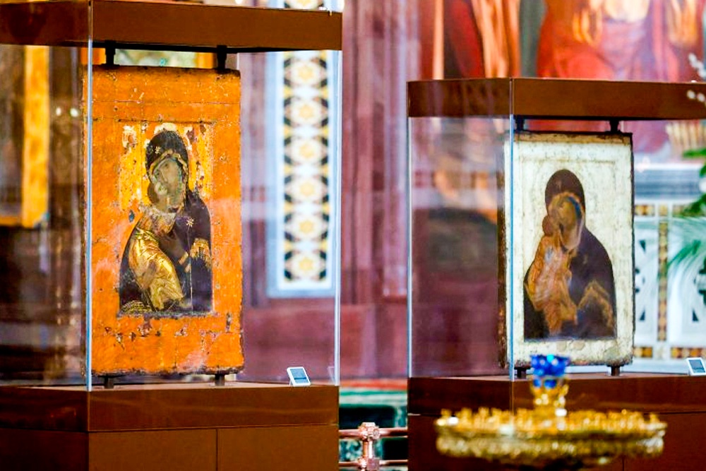 В храме Христа Спасителя прошло богослужение перед Владимирской и Донской иконами