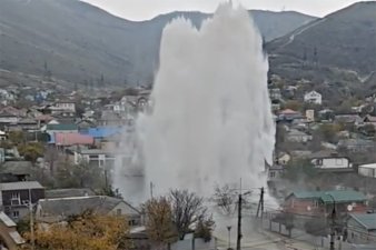 В Новороссийске из-за крупной аварии из-под земли вырвался огромный фонтан воды