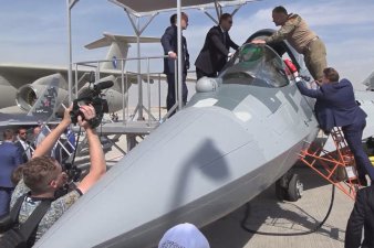 Мантуров осмотрел истребитель пятого поколения Су-57 на авиасалоне в Дубае