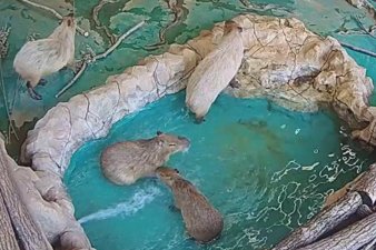Капибары из Московского зоопарка наслаждаются спа-процедурами